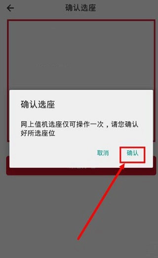 5、接下来的页面会呈现出座位选择列表,在其中挑选我们想要乘坐的位置,接着点击“确认选座”图标。