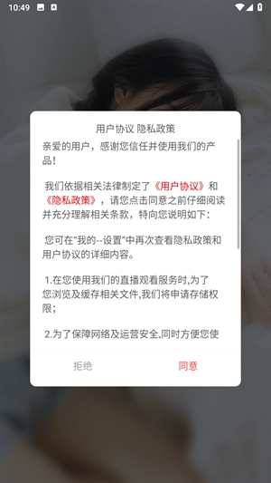 1. 开启软件时,会弹出用户隐私协议,认真阅读完毕后,点击同意便能进入。