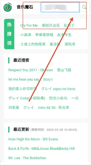 2. 搜索关键词,找出自己心仪的歌曲,迅速开启搜索并播放。