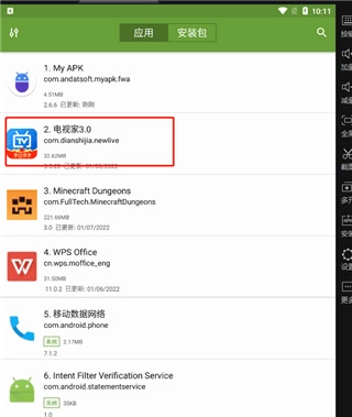 2. 根据应用程序类型对应用程序进行过滤:系统(预安装)类或用户(第三方应用程序)类