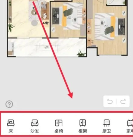 4、进入DIY家装界面后,便能依据设计需求,于界面下方挑选相应的家装工具,开展DIY设计。