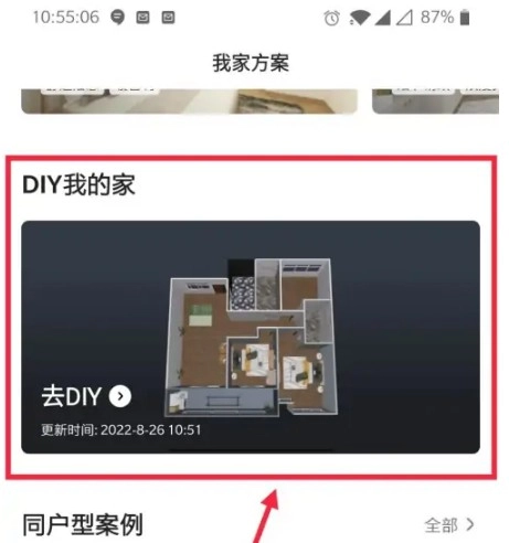 3、进入“我家方案”页面,于页面下方找到“DIY我的家”图片并点击。
