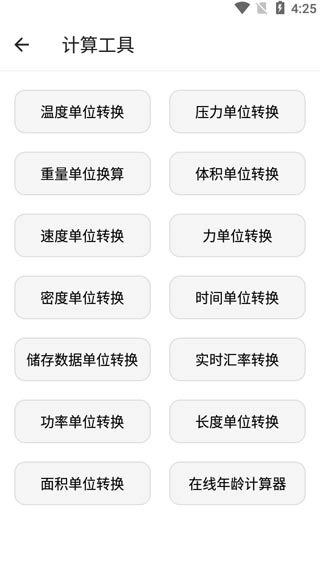3、点击打开计算工具,其中包含温度单位转换、压力单位转换、重量单位转换、体积单位转换等功能。