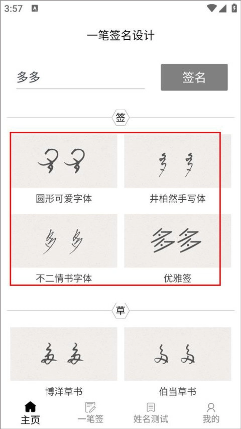 5、潇洒签名,楷行草隶篆任你选