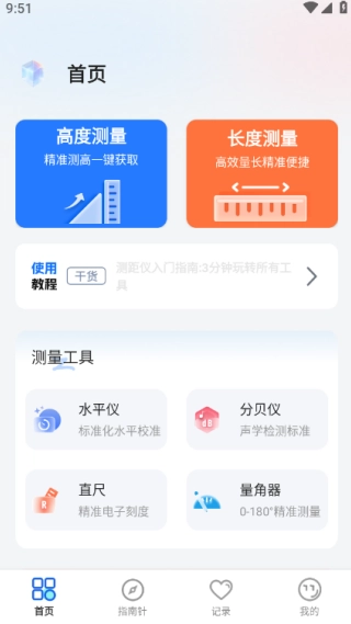 2、首页中心向用户提供了各类测量工具,像水平仪、分贝仪、直尺量角器等。