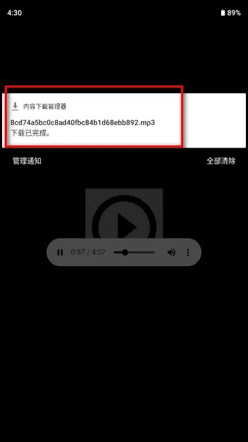 3、完成后,系统将提示该音乐已成功保存至本地。