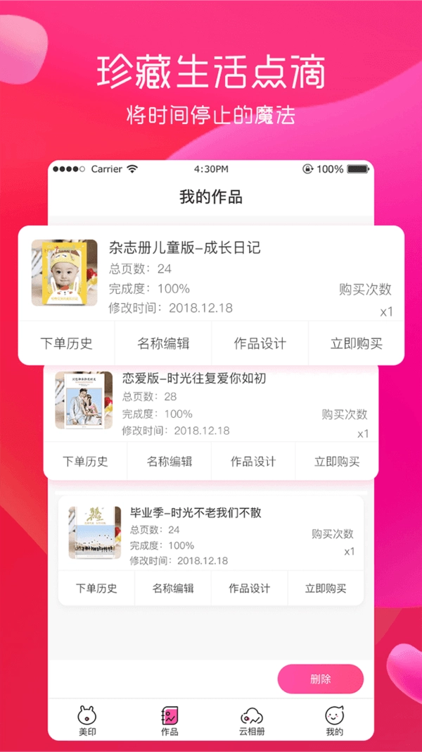 提供照片书、精装册、台历挂历、手机壳、水杯、抱枕、明信片、桌摆等各类产品的个性定制服务。