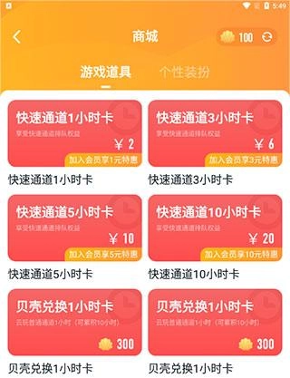 2. 进入商城之后,在其中选择【游戏道具】,便能购买具有不同时长的卡。