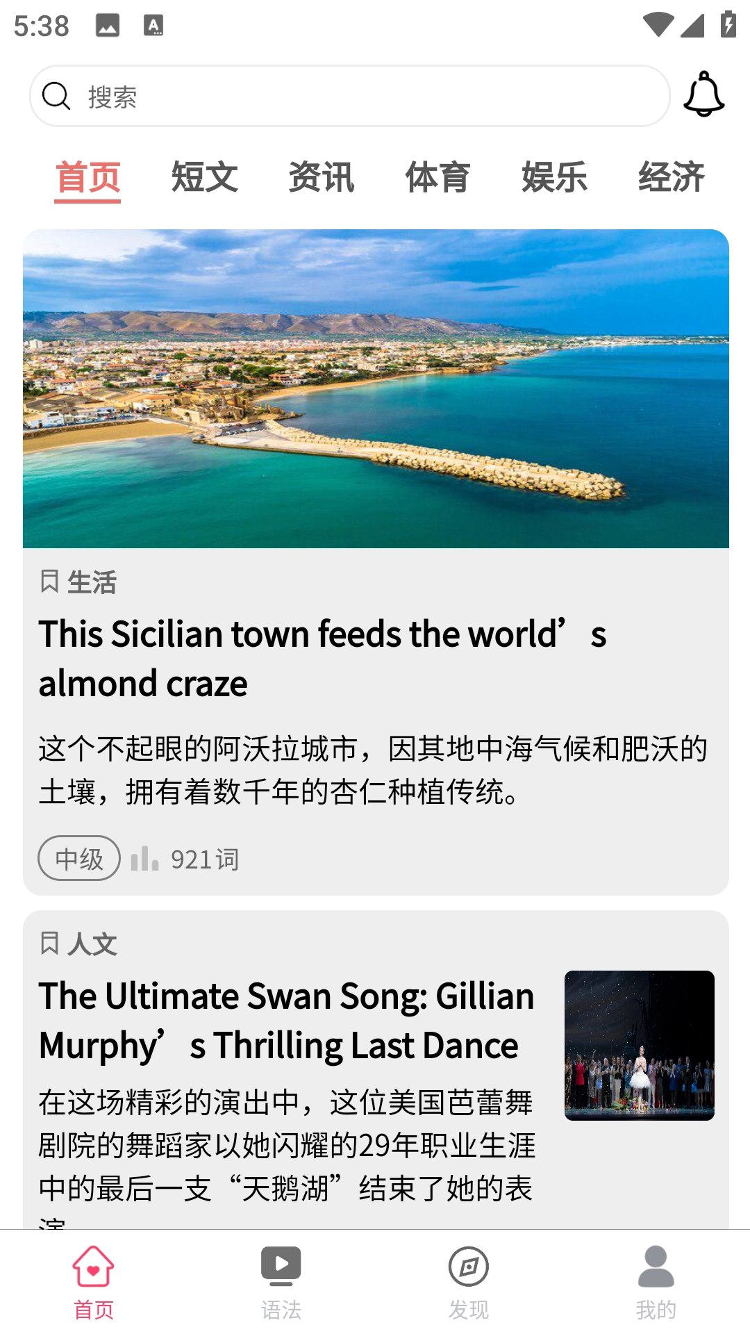 3、拓展丰富的资讯阅读内容,覆盖多个领域的英文资讯,帮助用户开阔知识视野。