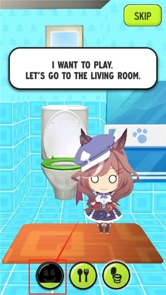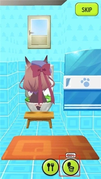 6、我们点击这个标识前往厕所,让哈基米去上厕所,等它上完后,这个标识就会变为100%。