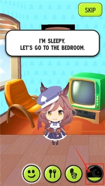 9、此刻我们发现哈基米略显困倦,这时我们点击这个按钮。