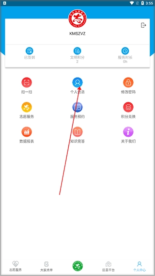 1. 完成“重庆文明实践”的安装后,进入软件的主页面,接着点击个人中心。