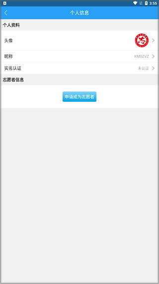 2、在此处,你能够注册成为志愿者,加入志愿团队,参与志愿活动,在获得积分后进行兑换。
