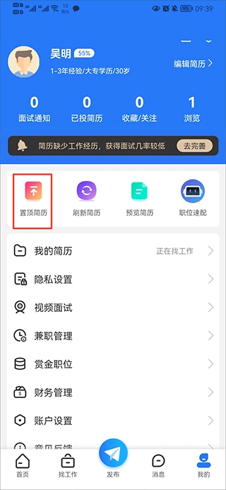 【个人中心】求职动态一手掌握,“谁看过我”与“HR来信”清晰呈现;职位订阅加职位推荐,契合您需求的岗位一个不少。简历编辑与管理,为求职增添胜算。