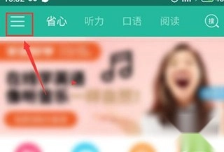 1. 开启省心英语,进入软件主界面,点击屏幕左侧的三条横线图标。