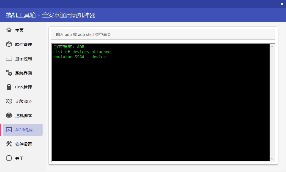 在adb终端,可以输入命令,控制手机;