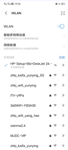 2、若您的打印机刚出厂,尚未进行任何配置,可打开手机WiFi,查找并连接打印机WiFi(WiFi名通常为打印机型号,WiFi密码请查阅打印机说明书),如下图所示: