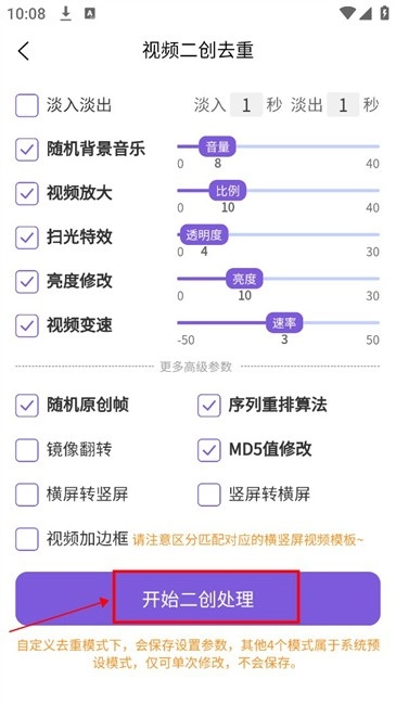 3. 编辑完成后,点击“开始二创处理”,只需等待视频处理完毕就可以了。