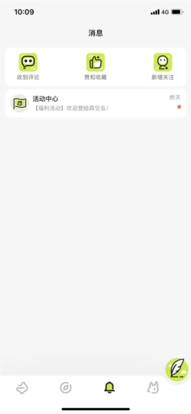 7、进入消息页面,能看到与自己有关的评论、点赞、收藏以及新增加的关注。
