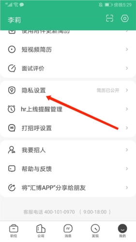 3. 当进入设置界面,滑动右侧的圆点,就能达成简历隐藏的操作。