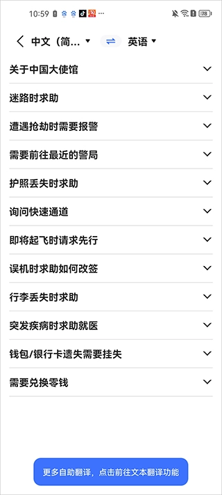5、要是你有出国的打算,却又顾虑语言交流存在障碍,别着急,在我的中心点击出国求救手册即可。