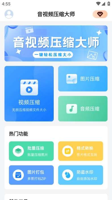 这款音视频处理工具为用户打造了便捷的音频压缩功能,同时具备专业级的图片与视频压缩能力,只需一键操作,就能轻松应对大文件存储难题,且全程保持无损处理,还可解锁更多实用功能,在保障质量的前提下满足多样需求,不妨来体验一番!