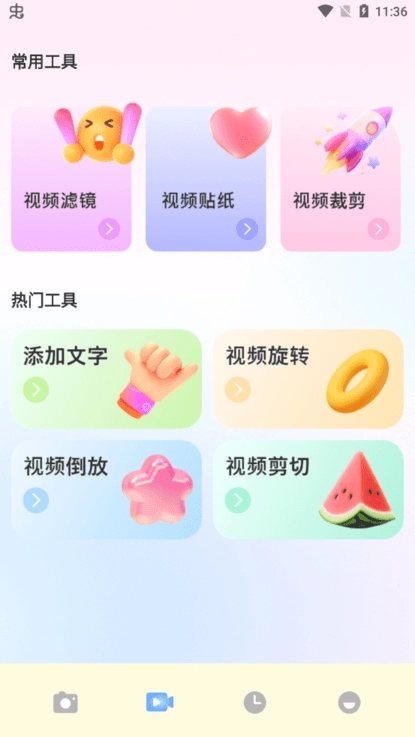 点击摄像机图标,这你可以对视频进行剪辑和创作