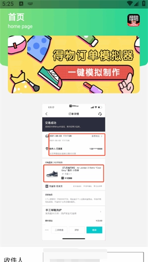 得物订单截图模拟器功能