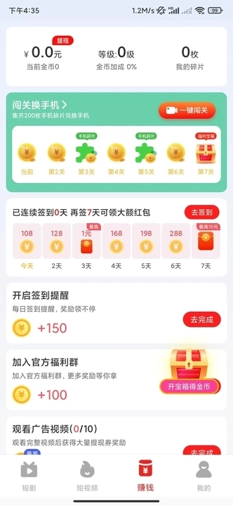 开心赚短视频领红包 有一款看短视频就能领红包的应用,操作起来特别简单,上手毫无难度。你可以在任何时间、任何地点观看各类优质短视频,要是觉得内容不错,还能分享给身边的朋友一起看,这样就能轻松获得收益啦!感兴趣的话,不妨试试看哦!