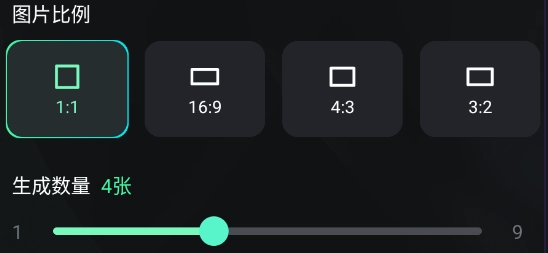 根据需求挑选图片的比例与生成数量,再点击“生成”按钮。