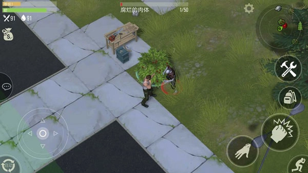 二:屏幕右上角显示的是你当前所在区域的雷达地图,借助它你能查看周围是否有可用的物资,以及是否存在僵尸。一旦有僵尸出现,地图上就会显示移动的红色标识。