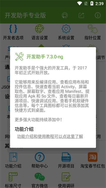 查看开源项目、调试应用程序、查看手机软硬件信息等,后续还会增加更多功能。
