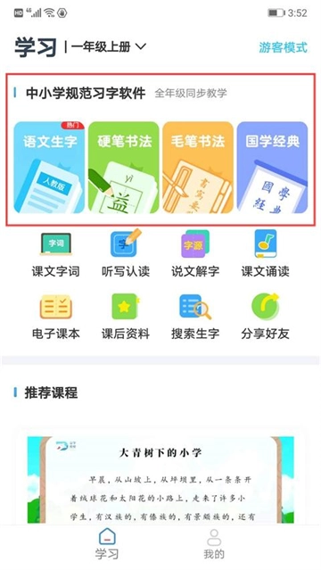 在首页找到【语文生字】【硬笔书法】等模块并点击,即可进入相应的学习板块。