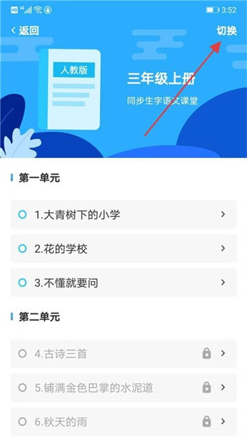 在课程页面点击【切换】按钮,就能更换年级和版本,以适配不同的学习需求。