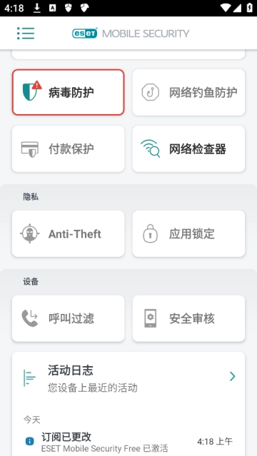 eset手机版 有一款名为ESET Mobile Security的手机应用,它具备强大的安全防护能力,能为手机提供可靠的健康保障。当用户启动该应用后,它便会自动开启扫描功能。无论是对文件还是应用程序进行扫描,用户都拥有自主选择权,应用会在每次扫描前向用户确认具体需求,以此提升用户的使用感受。