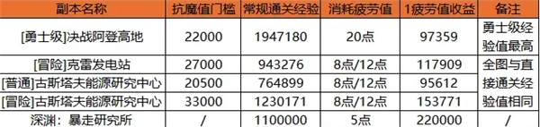 虽然勇士级副本单次消耗20点疲劳值,通关速度更快,但普通级副本的经验获取量仍然更占优势。