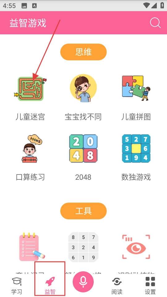 在益智页点击儿童迷宫,进入游戏选择界面。