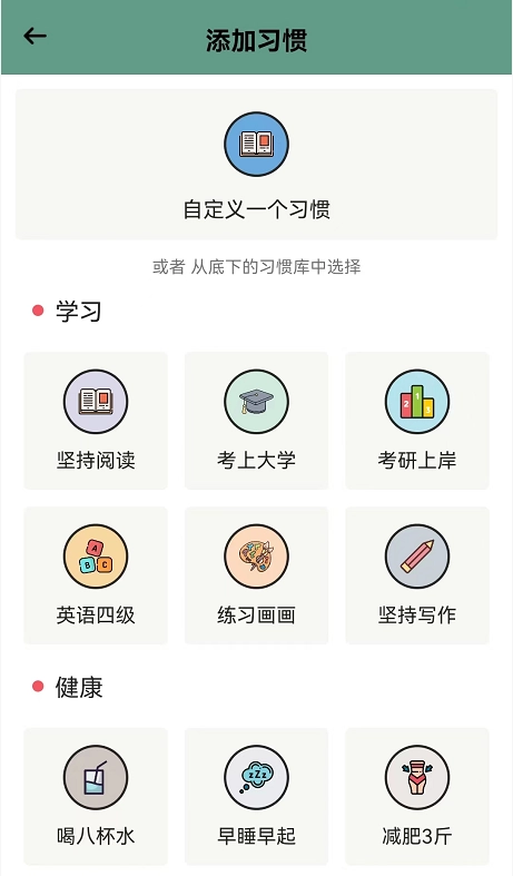 添加习惯:自定义添加自己想养成的好习惯