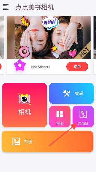 开启相关权限,进入主界面,点击【自由拼】图标。