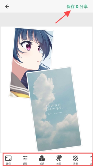 还可以添加滤镜、贴纸等,完成后保存或分享作品。