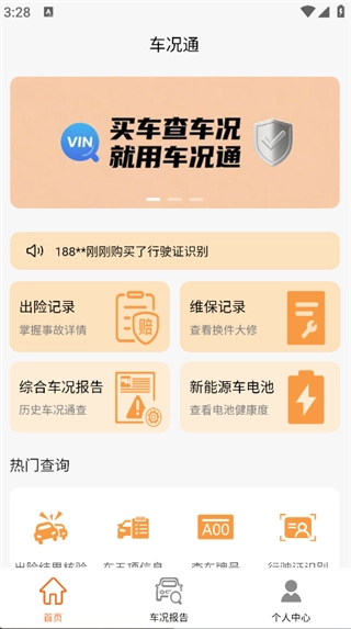 用户可以在主页直接使用出险查询、维保记录查看以及综合车况评估等功能。