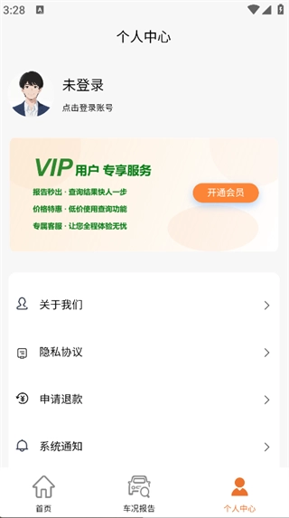 要查看过往的车况查询记录,只需点击页面底部的“车况报告”选项。