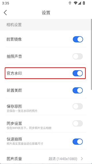 点击弹出的相机设置按钮