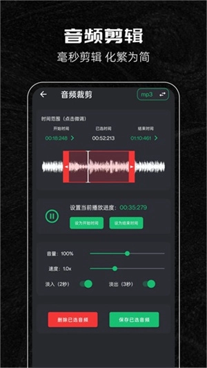 音量微调功能:可对音频的整体或局部音量进行调整,增加或降低音量,从而提升听觉感受。