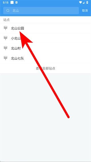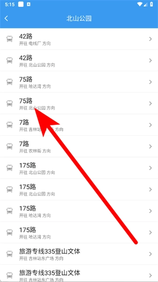 进入北山公园站点页面,选择要乘坐的公交线路。