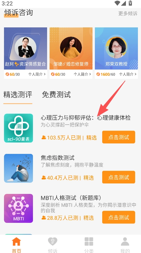 服务测试形式多元,包含倾诉咨询、多种心理测试及分类测评等内容,实现心理健康服务全场景覆盖,用户的各类需求可一站式满足。