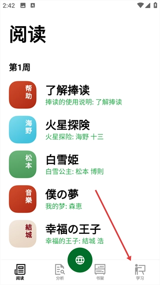 捧读 捧读作为一款高效的日语学习工具,搭载了智能阅读助手功能,可提供自动断句、词性标注、语义分析等多维度辅助,助力用户轻松掌握日语语法结构;其拥有海量词库支持离线查词解析,还能收藏生词与段落以便反复研习;此外,平台精心打造了入门互动课程,并搭配经典小说、音乐赏析等丰富内容,让日语学习告别枯燥感。