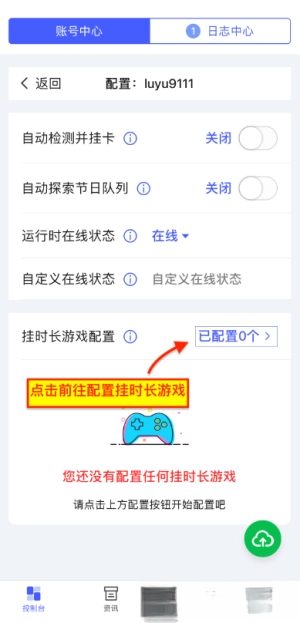 如果仅需挂时长,其他选项维持不变,点击挂时长游戏配置的按钮即可。