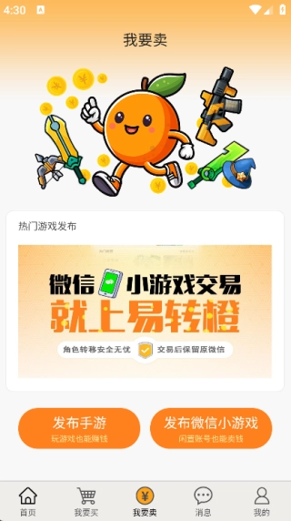 点击页面下方的“我要卖”按钮,就能发布微信小游戏账号相关信息。