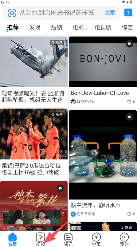 进入首页点击“视频”频道。